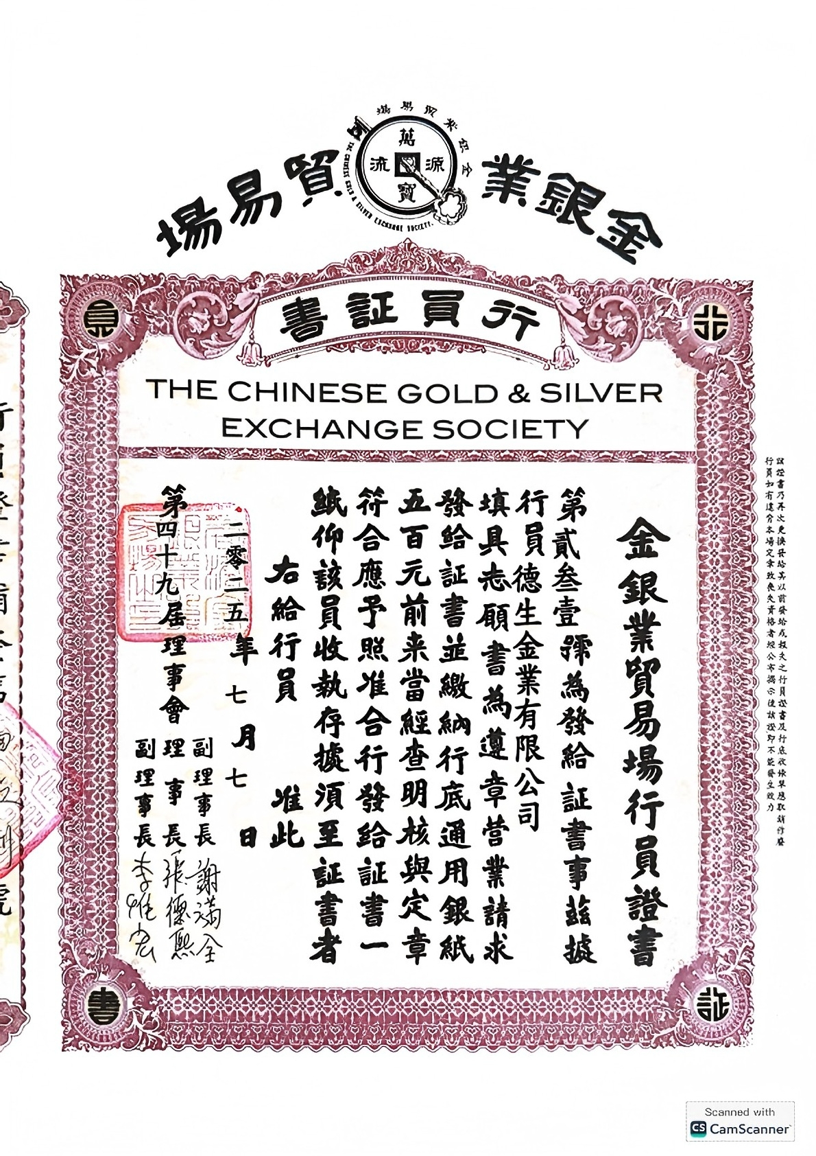 本公司為香港黃金交易所第231號行員